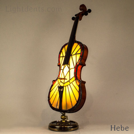 Viola accent lamp.Genuine viola musical instrument.Vintage solid brass base.Dimmer switch.Cozy warm color emits through the stained glass. No-heat LED light bulbs inside.An exquisite and elegant gift for all occasions