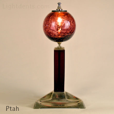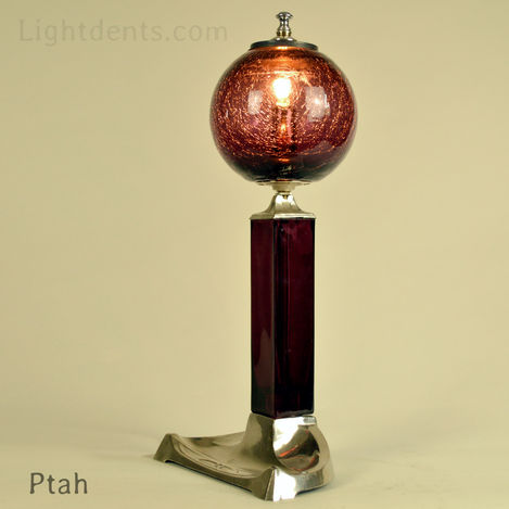 Accent lamp.Vintage pewter ink well Art Nouveau base.Semi-translucent ruby glass column.Vintage amber crackled glass.