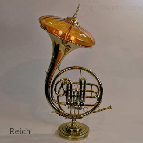 French horn accent lamp.Vintage amber glass shade.Vintage brass base.